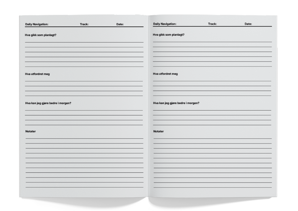 Ingen app, ingen distraksjoner. Bare en journal og et stort Navigation Board på veggen som jobber sammen.
