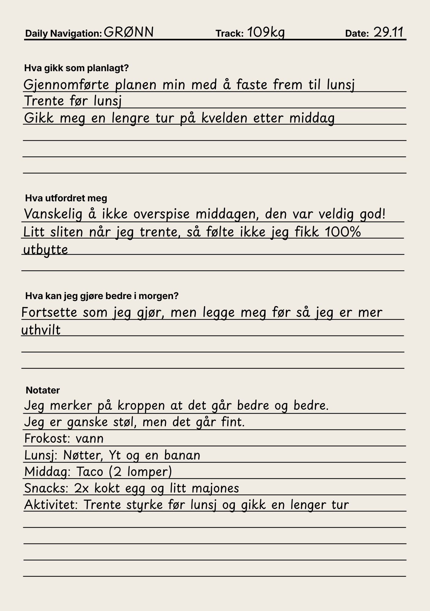 Du ser hva som gir deg gode dager, og hva som gjør at kroppen føles tyngre eller mer urolig.